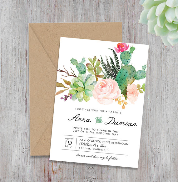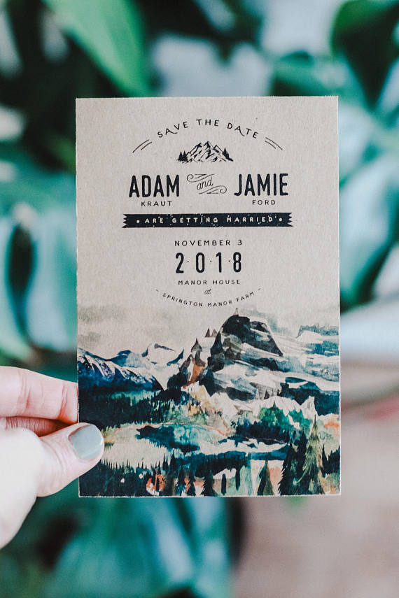 These are a few of our favorite Etsy Finds: Eucalyptus Gold Geometric Wedding Invitation, Save The Date Calendar, Floral Succulents Wedding Invitations, Library Card Save The Date, Rocky Mountain Watercolor Save The Date, Rustic Stacked Invite