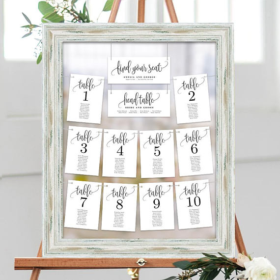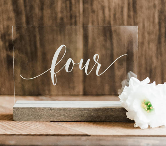 These are a few of our favorite Etsy Finds: Wine Bottle Table Number, Seating Chart, Acrylic Table Numbers, “We Do” Program, Wedding Welcome Sign, Personalized Menu