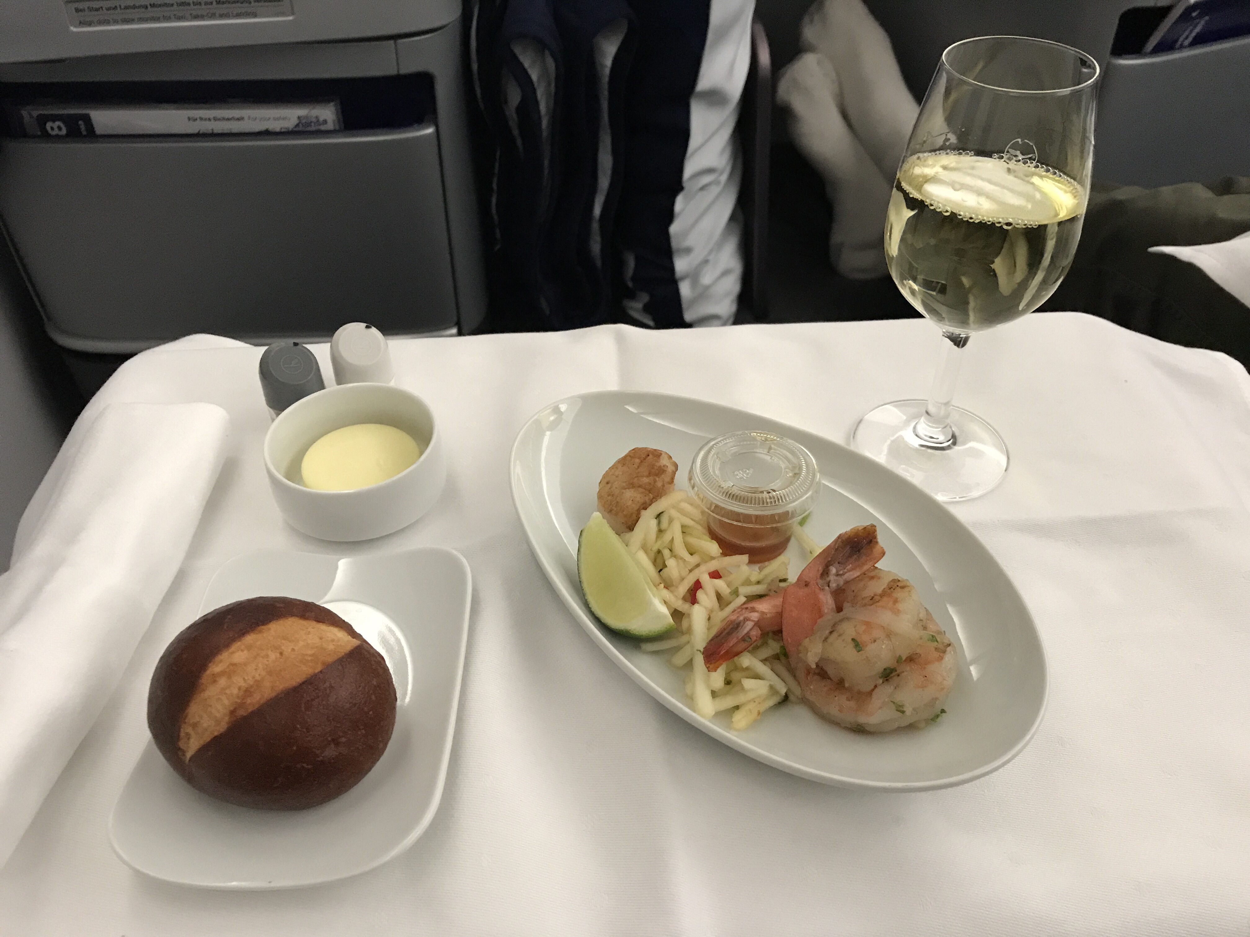 That being said, you’ll have plenty of opportunities to take advantage of complimentary beverages along the way and that’s part of the fun for sure! Every business class lounge I’ve been in offered a complimentary bar, most flights offered a pre-departure glass of champagne (or Orange Juice + a bottle of water), and there is fairly constant wine/bar service in flight. If you enjoy a glass of port, I highly recommend trying some with the cheese course – so delicious!